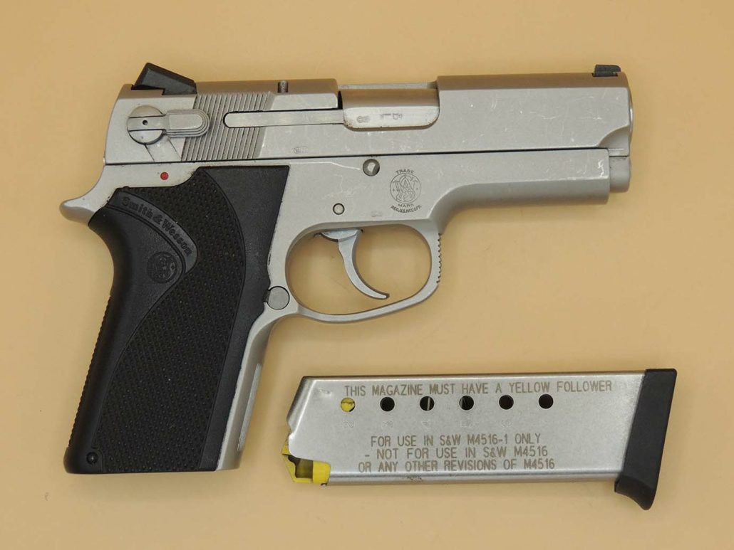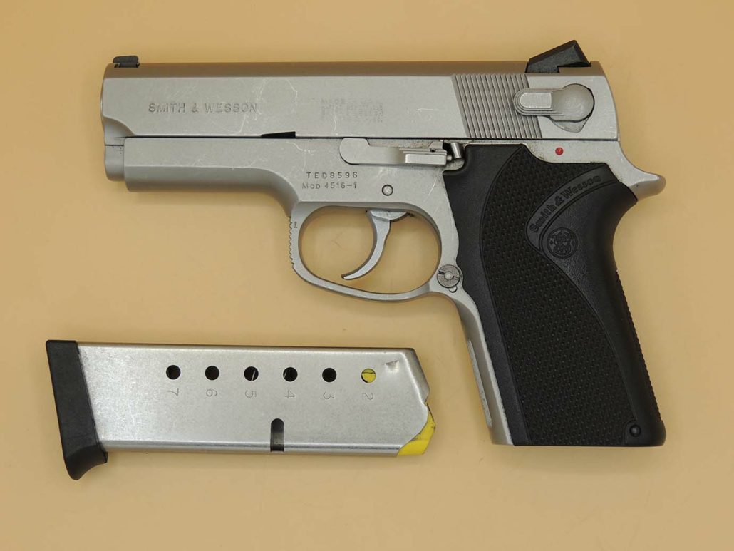 Smith & Wesson 4516‑1 .45 Auto – kompakte Edelstahl‑Pistole mit belgischem Beschuss (Liège), seltener 3rd‑Gen‑Klassiker