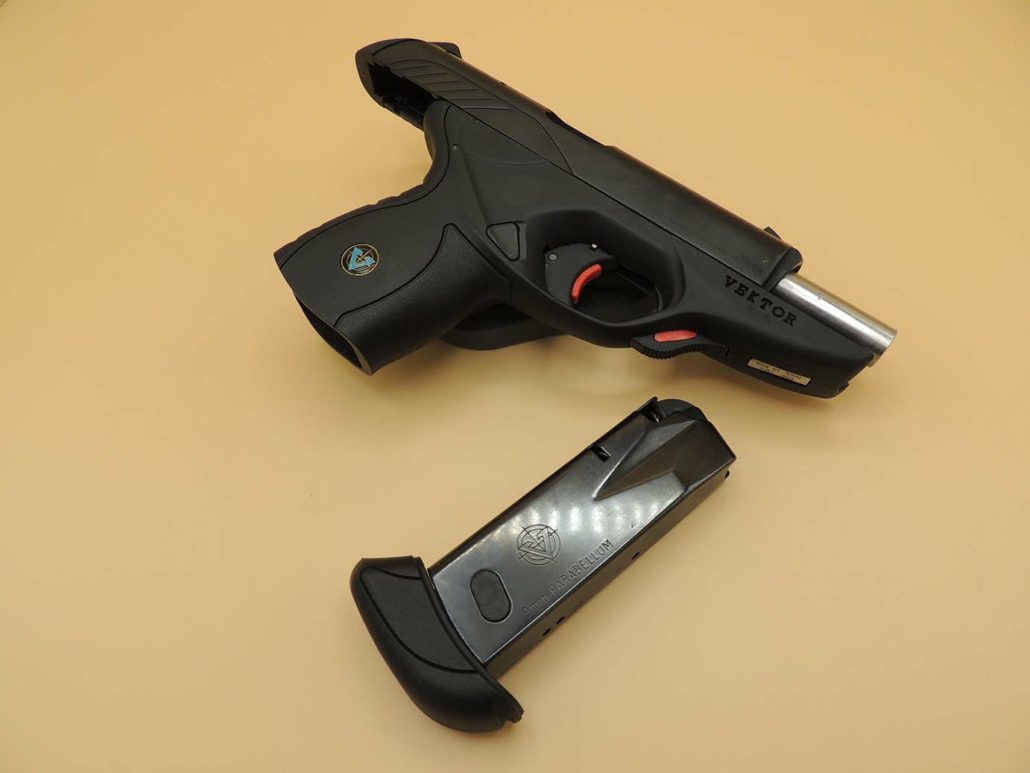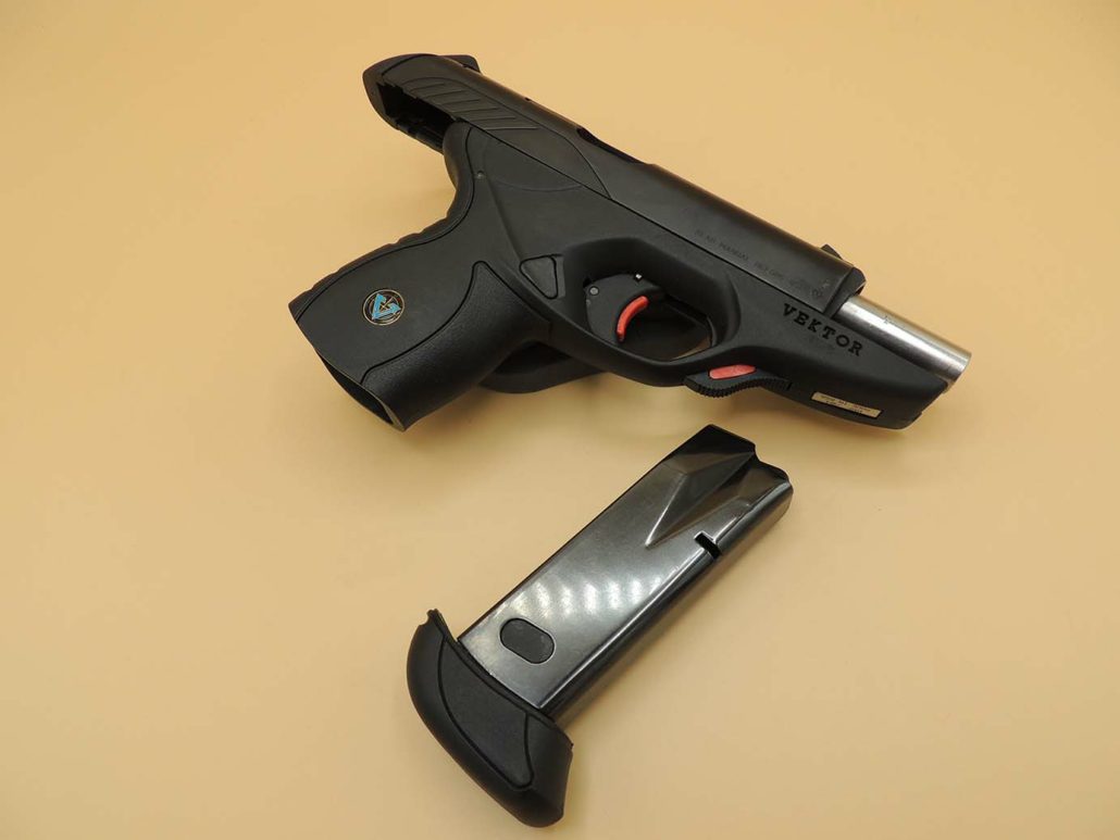Zum Verkauf steht eine hervorragend erhaltene Vektor CP1 im Kaliber 9mm Luger, ein Modell, das aufgrund seiner geringen Produktionsmenge und seines markanten Designs heute zu den begehrten modernen Sammlerwaffen zählt.