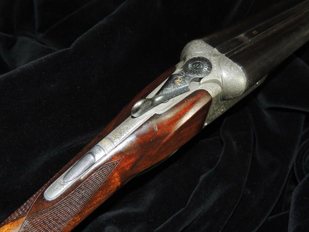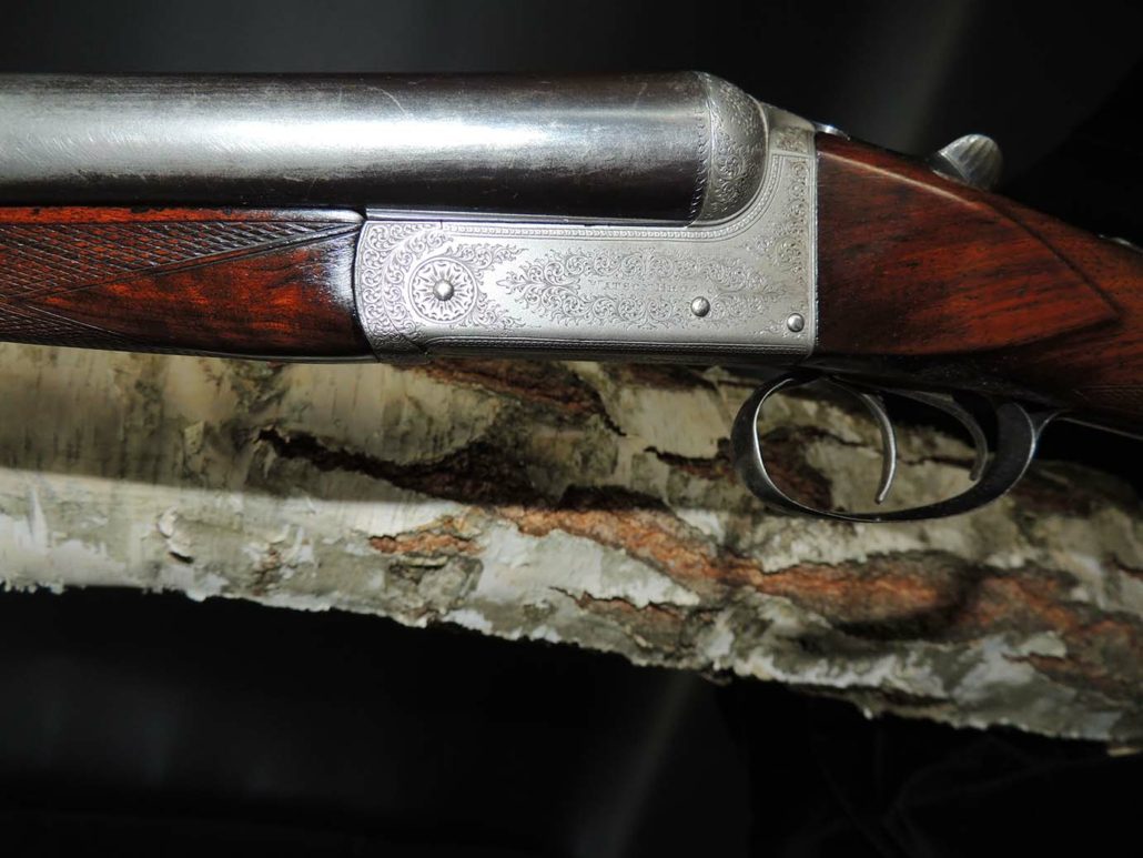 Diese seltene Watson Bros. London Doppelflinte stammt aus einer exklusiven Pärchenfertigung und trägt die Nummer 2. Das Pärchen wurde 1906 in London erzeugt.  Laut überlieferter Geschichte wurde die Schwesterflinte Nr. 1 im Zweiten Weltkrieg durch Bombentreffer zerstört, während dieses Exemplar in einem anderen Gebäude versteckt war und den Krieg unbeschadet überstand. Später gelangte die Flinte in den Besitz von Direktor Hubert Plitschek, der sie nach seinem Tod seinem Revierförster Sepp Bader überließ. Eine außergewöhnliche englische Jagdwaffe mit authentischer, nachvollziehbarer Provenienz